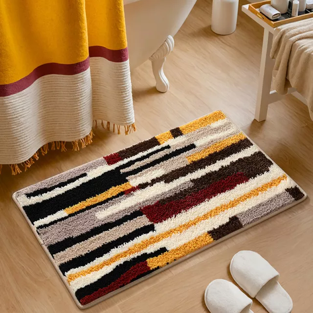 Add a pop of personality to your home with this Colorful Tufting Stripe Bathroom Mat—a soft, plush rug designed to make your space feel brighter, cozier, and effortlessly stylish. Crafted with a thick, cushiony tufted surface and a geometric striped design, this mat blends comfort with eye-catching aesthetic appeal. Whether you place it in your bathroom, bedroom, or entryway, it instantly elevates the room while keeping your floors tidy and welcoming.